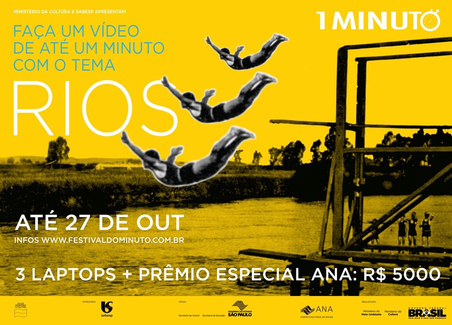 Se você tem uma história para contar que envolva o tema rio, produza seu vídeo de 1 minuto e inscreva no site www.festivaldominuto.com.brsua criação. As inscrições são abertas a todos os públicos e seguem até o dia 27 de outubro de 2012.