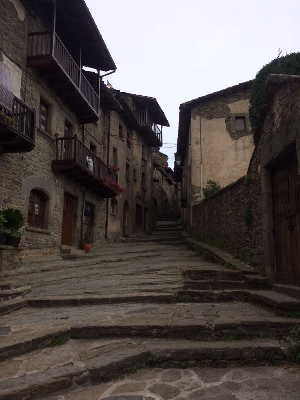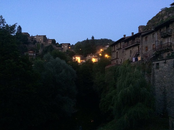 Depois de me banhar, sentei para meditar e observar os pássaros que ali voavam, as andorinhas dançavam junto ao vento do entardecer. Quando o sol já estava se pondo fui caminhar entre as árvores. Quem cuida da trilha e oferece apoio aos visitantes que vem em busca de natureza são os residentes do charmoso povoado local, Rupit i Pruit. Uma ponte peculiar nos convida a entrar e descobrir a região que parece uma viagem de volta ao tempo medieval. Pequena, com uma população em torno de 300 pessoas, Rupit é um recanto de casas rústicas e pedras de paralelepípedo do século XVI e XVII.